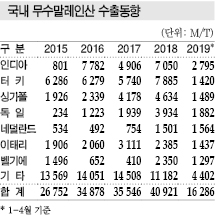 무수말레인산(Maleic Anhydride)은 일본 수급이 급격히 타이트해지고 있다. 표, 그래프: <국내 무수말레인산 수출동향> <화학저널 2019년 6월 24일> |