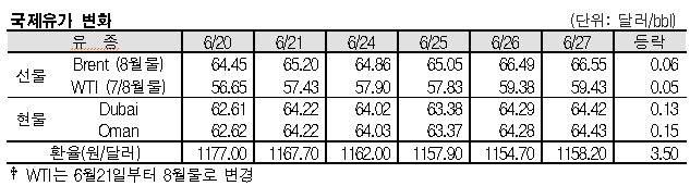 6월27일 국제유가는 OPEC(석유수출기구)+의 감산 연장 가능성, 이란의 우라늄 농축 가속화 전망 등의 영향으로 상승했다.