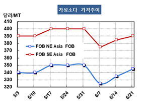 표, 그래프: <가성소다 가격추이> <화학저널 2019/06/28> |