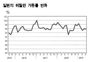 표, 그래프: <일본의 에틸렌 가동률 변화>