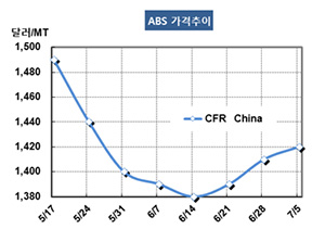 표, 그래프: <ABS 가격추이> <화학저널 2019/07/10> |