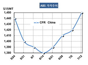 표, 그래프: <ABS 가격추이> <화학저널 2019/07/17> |