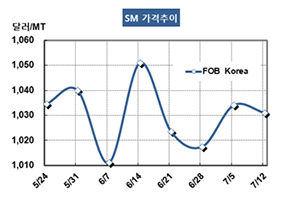 표, 그래프: <SM 가격추이> <화학저널 2019/07/17> |