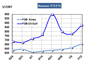 표, 그래프: <Benzene 가격추이> <화학저널 2019/07/17> |
