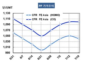 표, 그래프: <PP 가격추이> <화학저널 2019/07/23> |