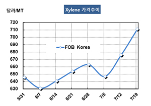 표, 그래프: <Xylene 가격추이> <화학저널 2019/07/25> |