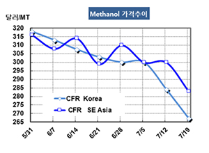 표, 그래프: <Methanol 가격추이> <화학저널 2019/07/26> |
