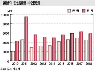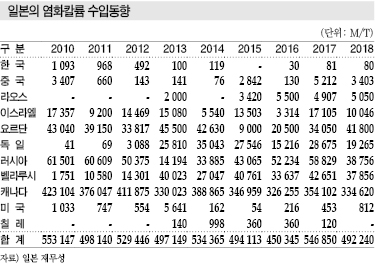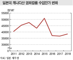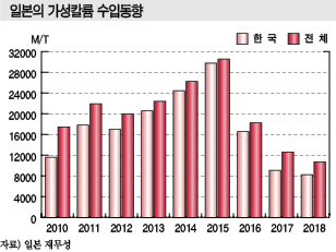 일본은 2018년 가성칼륨 내수가 약 12만톤으로 전년대비 1만톤 증가했다.