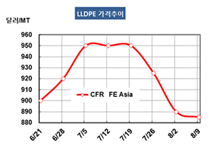 LLDPE(Linear Low-Density Polyethylene)은 폭락 가능성이 엿보이고 있다.