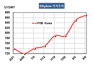 에틸렌(Ethylene)은 상승세를 계속했다.