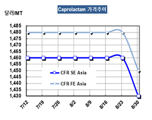 표, 그래프: <Caprolactam 가격추이> <화학저널 2019/09/05> |