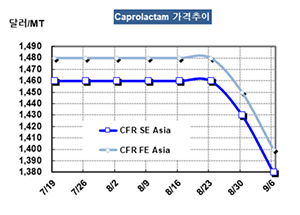 표, 그래프: <Caprolactam 가격추이> <화학저널 2019/09/11> |