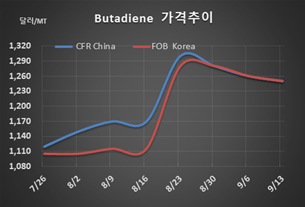 표, 그래프: <Butadiene 가격추이> <화학저널 2019/09/17> |