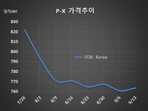 표, 그래프: <P-X 가격추이> <화학저널 2019/09/19> |