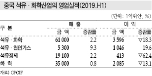 중국은 석유·화학 매출이 증가했으나 이익은 크게 감소했다.