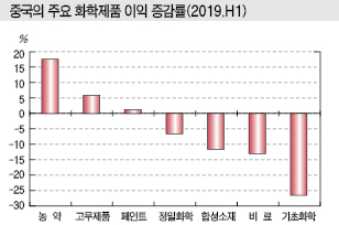 2019년 상반기에는 미국-중국 무역마찰이 영향을 미친 가운데 중국의 자동차 판매 부진이 겹침으로써 석유화학을 중심으로 상당한 타격을 입은 것으로 나타나고 있다.