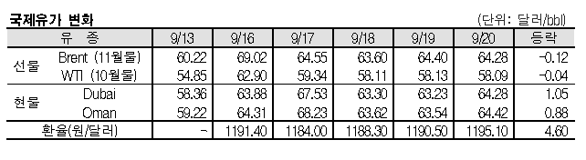 [국제유가] 국제유가, 쿠르드 수출 재개 “급락” 2025-09-30