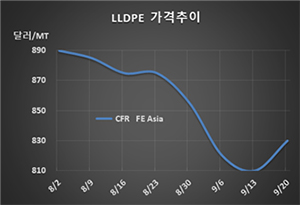 LLDPE 시세는 9월18일 CFR FE Asia 톤당 830달러로 20달러 상승했고 CFR SE Asia도 850달러로 20달러 올랐다. CFR S Asia 역시 830달러로 20달러 상승했다.