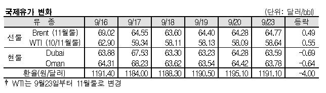 [국제유가] 국제유가, 69달러대에서 소폭 상승 | 2025-09-26 |