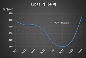 표, 그래프: <LLDPE 가격추이> <화학저널 2019/09/30> |