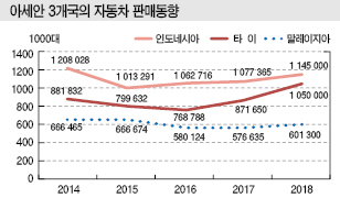 미국 Frost & Sullivan에 따르면, 2018년 신차 판매대수는 타이가 5년만에 100만대를 돌파했으며 인도네시아는 115만대로 증가했고 말레이지아는 3년만에 60만대를 회복한 것으로 추정되고 있다.