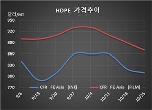 HDPE(High-Density Polyethylene)는 하락세를 계속하고 있다.