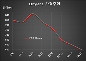 에틸렌(Ethylene)은 하락행진을 이어가고 있다.