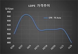 표, 그래프: <LDPE 가격추이> <화학저널 2019/11/11> |