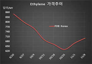 표, 그래프: <Ethylene 가격추이> <화학저널 2019/11/11> |