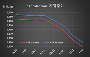 표, 그래프: <Caprolactam 가격추이> <화학저널 2019/11/14> |