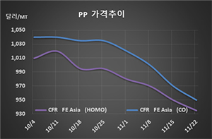 표, 그래프: <PP 가격추이> <화학저널 2019/11/26> |