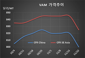 표, 그래프: <VAM 가격추이> <화학저널 2019/11/28> |