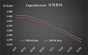 표, 그래프: <Caprolactam 가격추이> <화학저널 2019/11/28> |