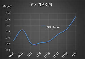 표, 그래프: <P-X 가격추이> <화학저널 2019/12/12> |