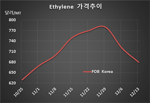 표, 그래프: <Ethylene 가격추이> <화학저널 2019/12/16> |