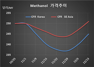 표, 그래프: <Methanol 가격추이> <화학저널 2019/12/20> |