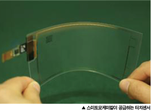 필름 터치센서는 대화면화에 대응해 접어도 도전성을 확보할 수 있는 ITO(Indium Tin Oxide) 대체제품을 개발하고 있다.