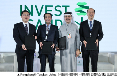 또다른 폴리에스터 메이저 Tongkun Group 21%, Juhua Group 21%, 아람코(Saudi Aramco) 9% 출자한 대규모 석유정제 및 석유화학 컴플렉스 건설 프로젝트는 석유정제능력 4000만톤의 정유공장을 중심으로 P-X 800만톤, 에틸렌(Ethylene) 400만톤 생산능력을 확보할 예정인 것으로 알려졌다.