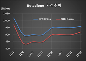 부타디엔(Butadiene)은 오름세로 전환됐다.