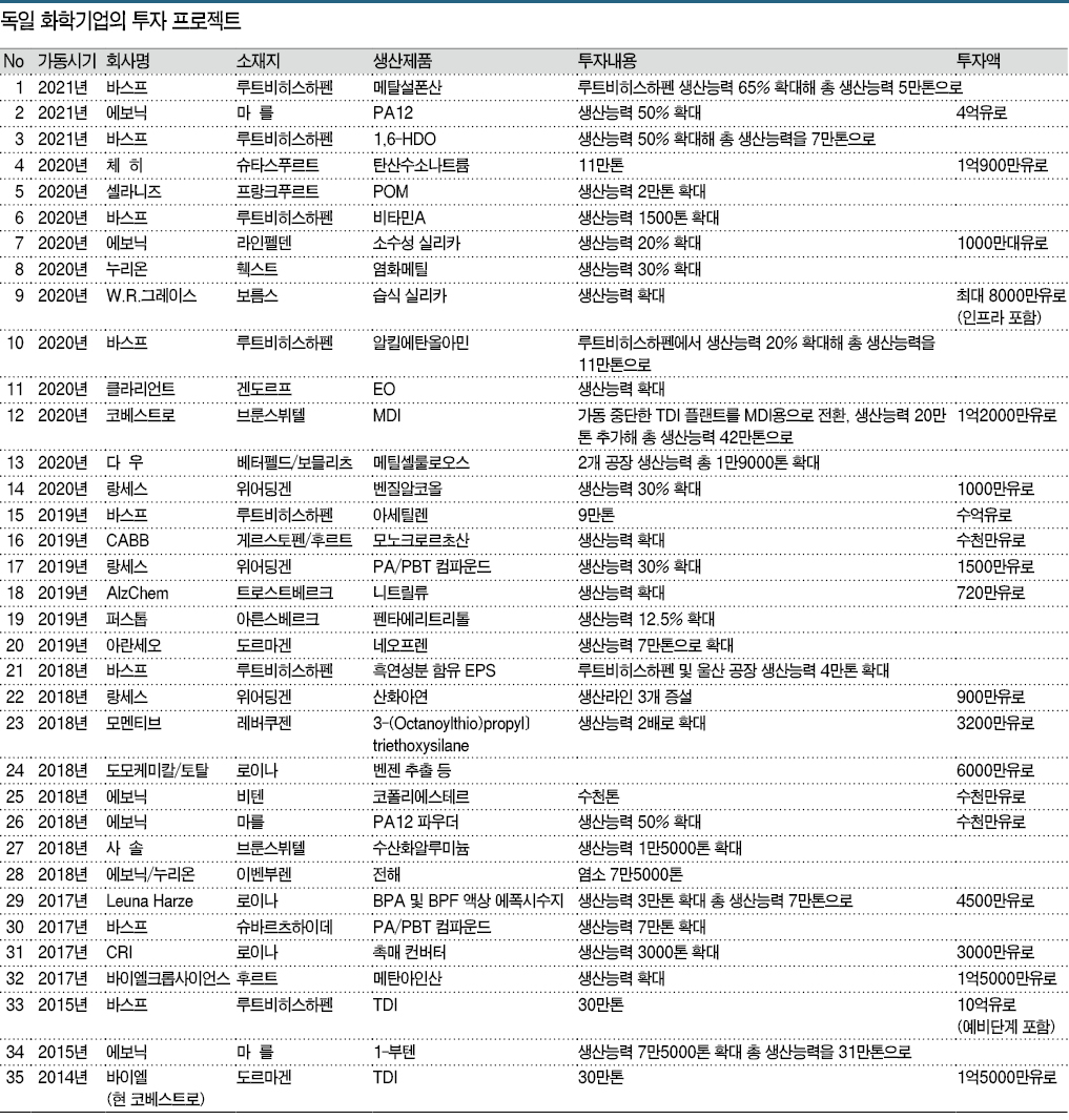 독일 화학산업은 최근 설비투자가 활발하게 이루어지고 있다.