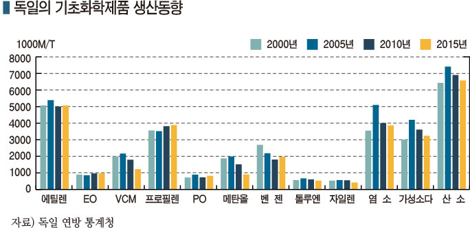 기초화학제품은 주요 재무 데이터가 악화됐음에도 불구하고 2000-2015년 생산량이 거의 변하지 않았다.