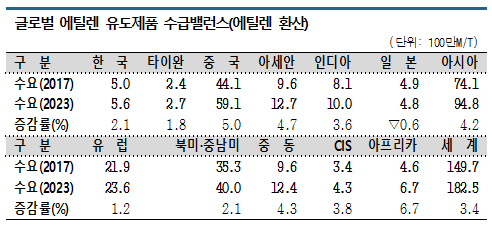 에틸렌 유도제품과 마찬가지로 아시아가 세계시장을 견인할 것으로 판단했다.