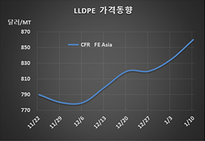 LLDPE(Linear Low-Density Polyethylene)는 급등현상이 연속적으로 나타났다.