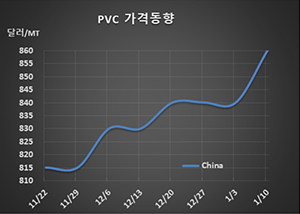 표, 그래프: <PVC 가격동향> <화학저널 2020/01/14> |