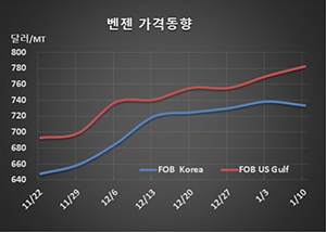 벤젠(Benzene)은 700달러대 초반에서 등락하고 있다.