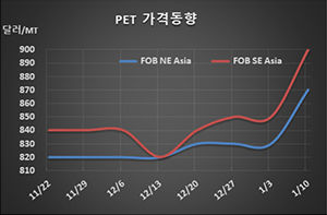 PET(Polyethylene Terephthalate)는 갑자기 급등했다.