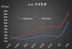 표, 그래프: <O-X 가격동향> <화학저널 2020/01/16> |