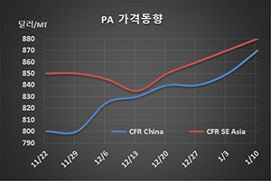 표, 그래프: <PA 가격동향> <화학저널 2020/01/17> |