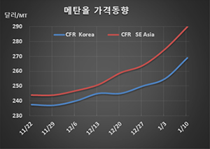 표, 그래프: <Methanol 가격동향> <화학저널 2020/01/17> |