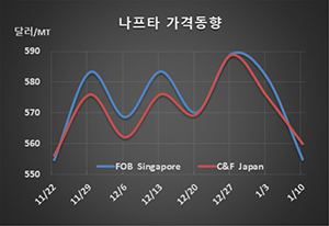 표, 그래프: <Naphtha 가격동향> <화학저널 2020/01/17> |